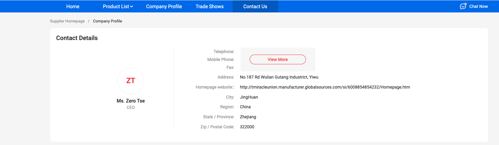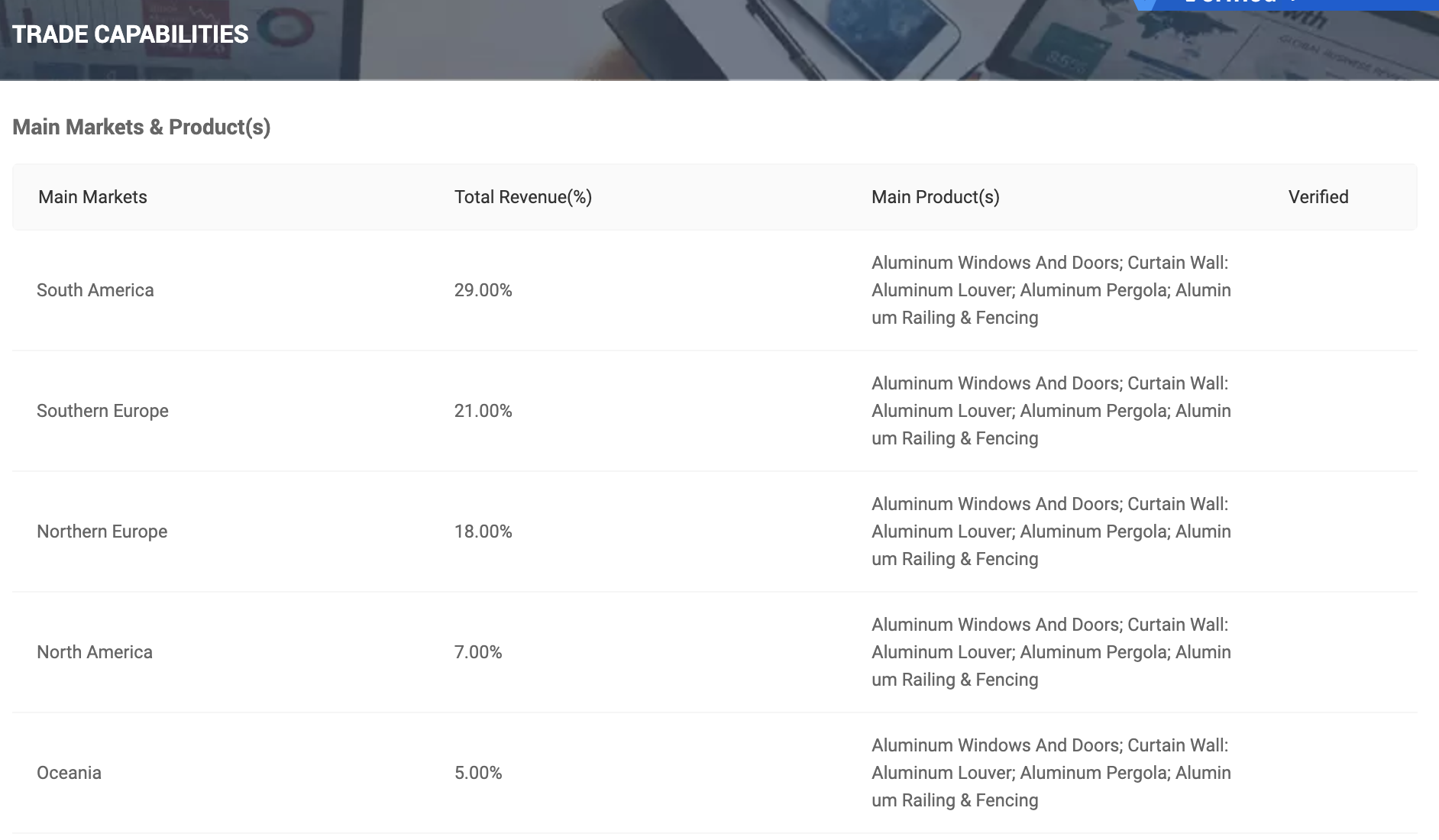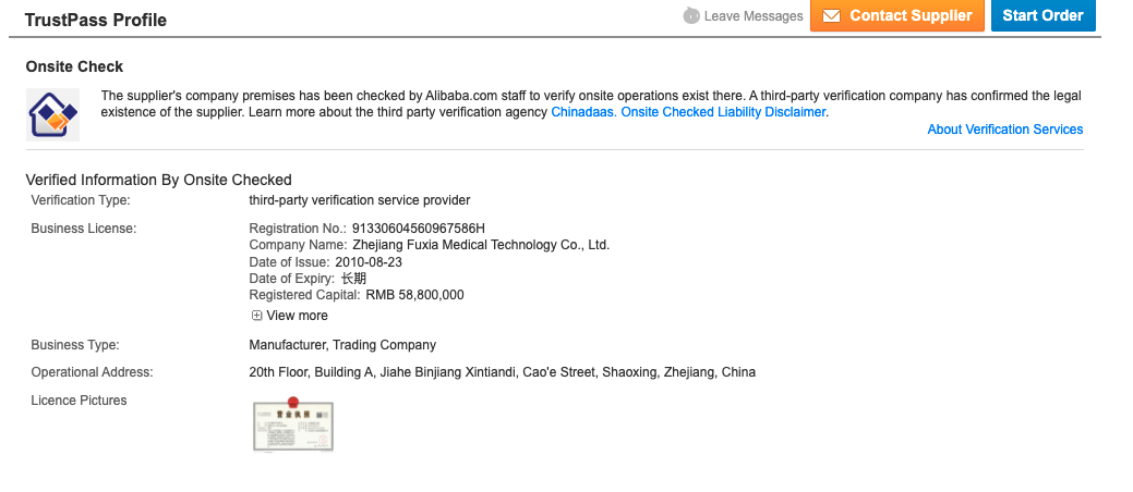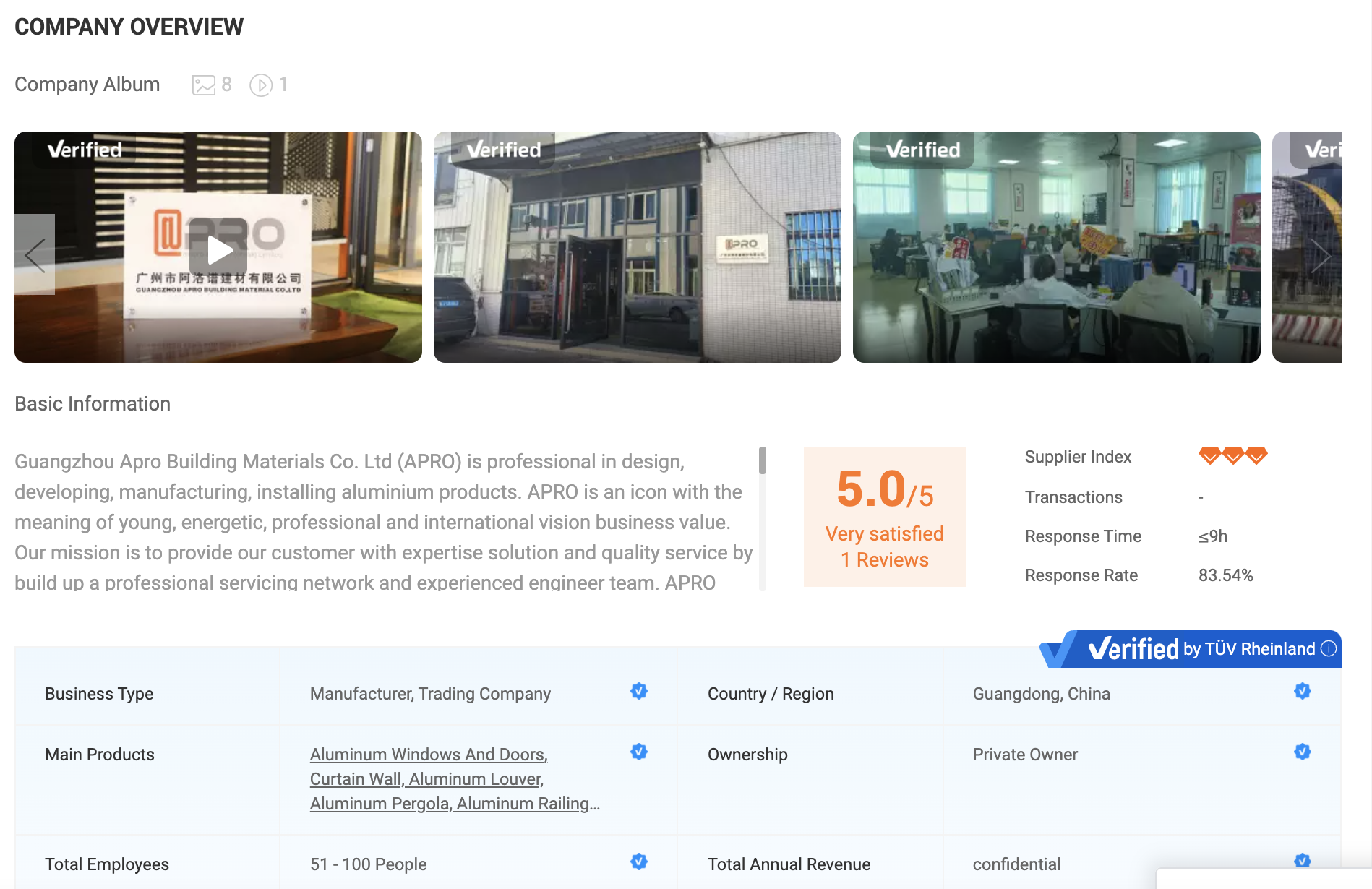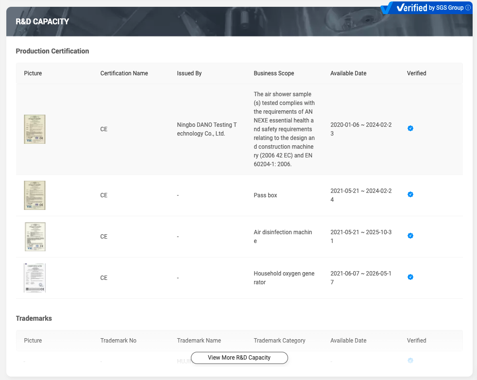 Certification section shows the most important business certifications of this brand.